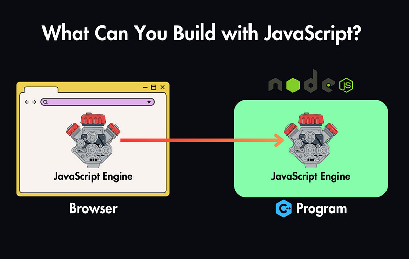 In 2009, Ryan Dahl introduced Node.js, which revolutionized JavaScript’s capabilities. Node.js takes the V8 engine from Chrome and embeds it within a C++ program, allowing you to run JavaScript on servers, your desktop, or any environment outside the browser.