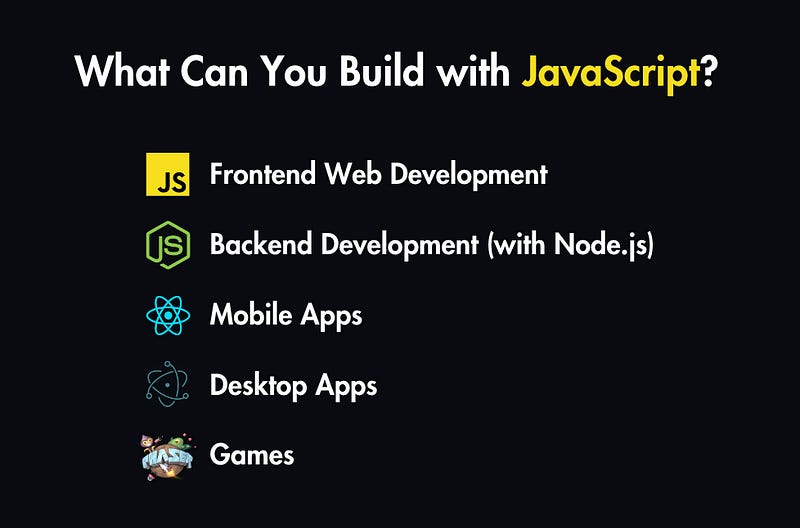 Games: Even simple browser-based games can be built with JavaScript, and frameworks like Phaser offer more advanced capabilities.