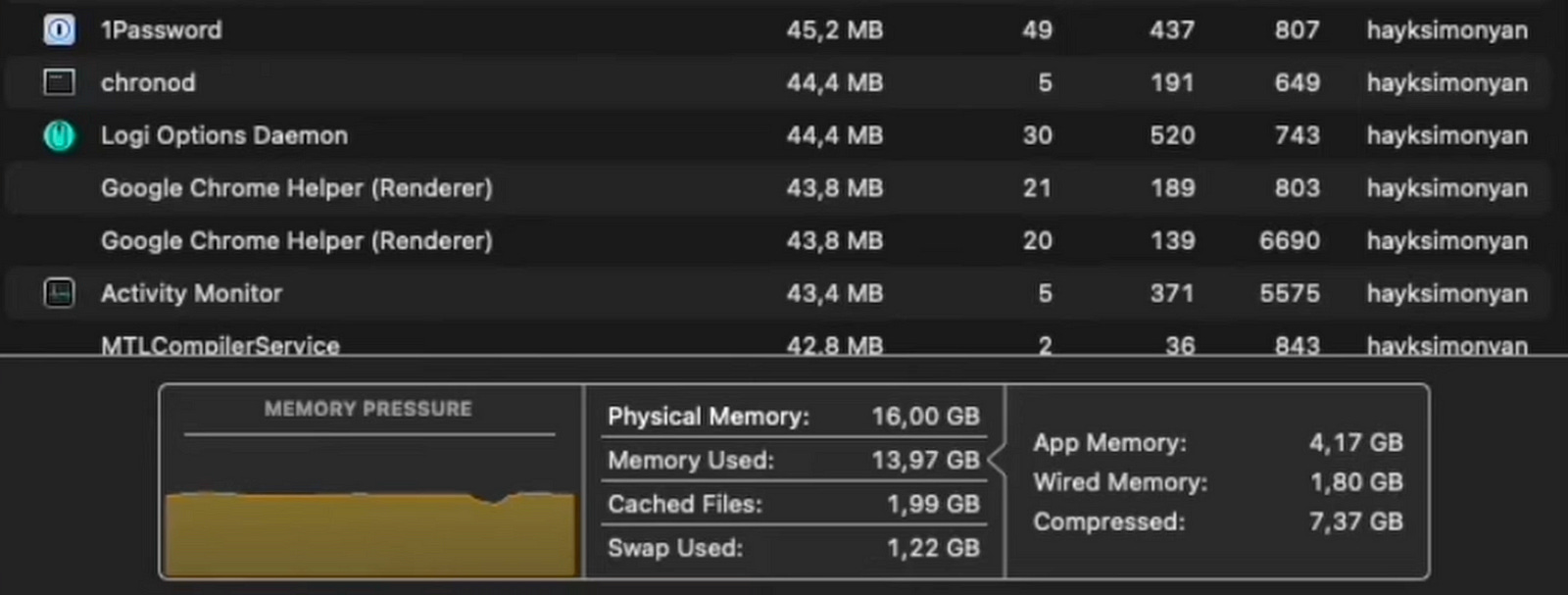 As you can see 14 GB memory is used from my system, and there is very little room for other applications.