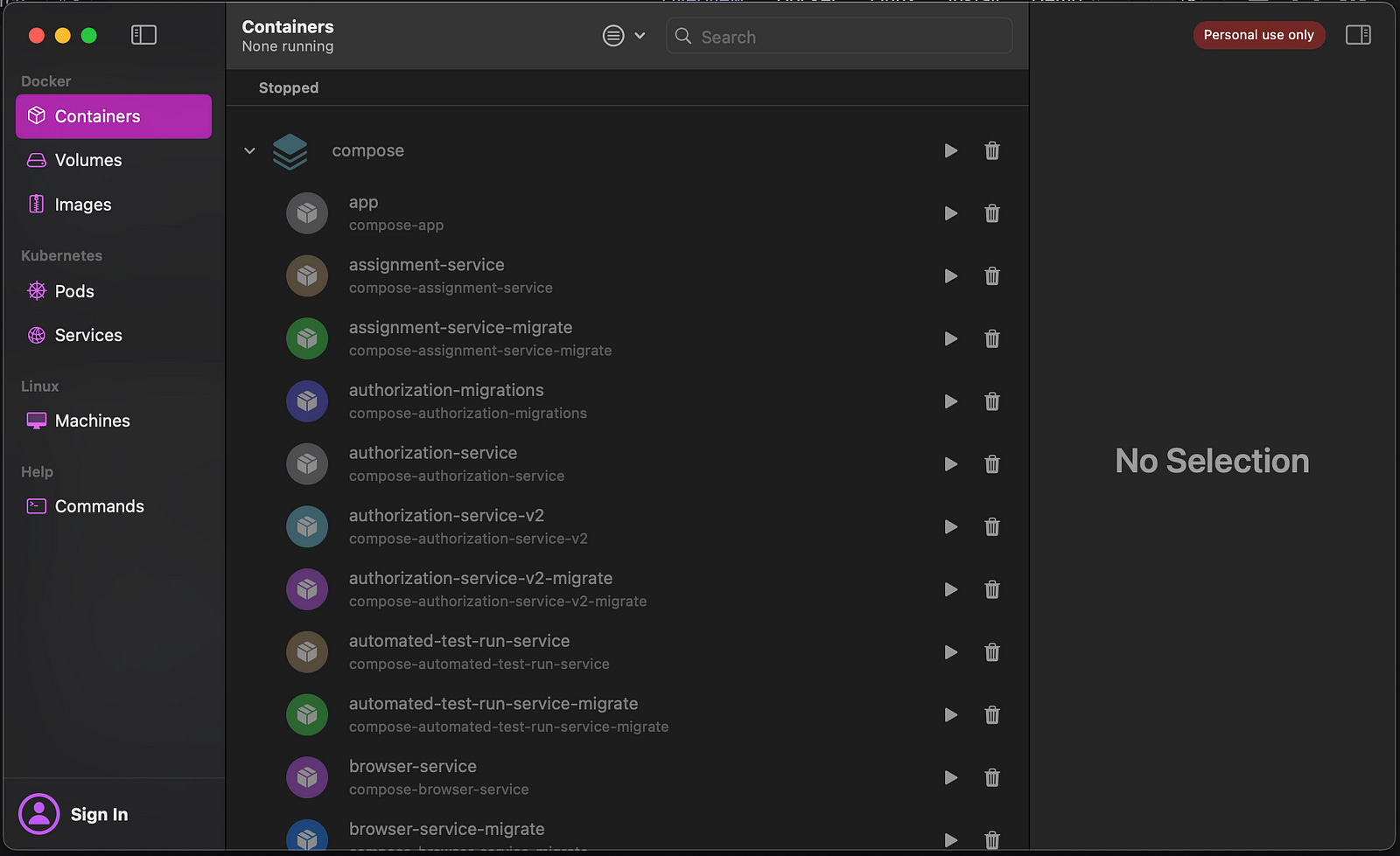 Here’s an example of me running 20 microservices locally with Docker Desktop.